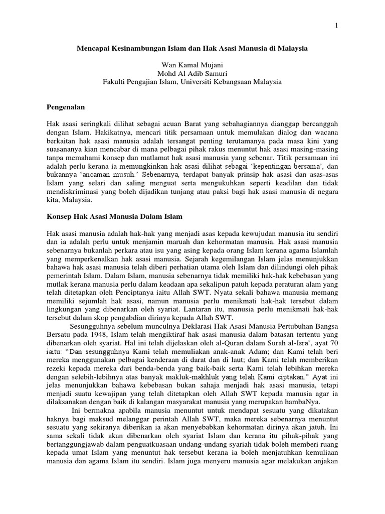 Artikel Mencapai Kesinambungan Islam Dan Hak Asasi Manusia Di Malaysia Pdf