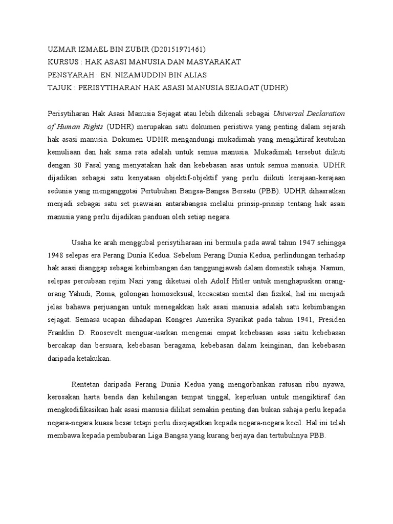 Pengisytiharaan Hak Asasi Manusia Sejagat Atau Lebih Dikenali Sebagai Universal Declaration Of Human Rights Pdf